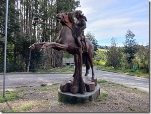 Nous sommes maintenant en territoire Mapuche ! Des grandes statues en bois jalonnent le bord de la route et des ferias dans les villages pour vendre l’artisanat local. On trouve beaucoup d’objets en bois, du miel, des confitures, et pleins d’objets en laine (vêtements, tapisserie, figurines).